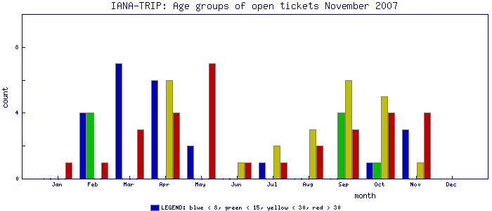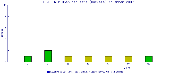 November 2007Due to the nature of resource request reviews, ICANN/IANA and the IETF community are jointly responsible for cooperatively managing the resource request process. ICANN/IANA has control over the functions it performs directly, e.g., receiving requests, making sure they are syntactically and semantically sensible, forwarding the requests to Designated Experts where appropriate, creating and modifying the registries, etc. The IETF community has direct or indirect control over functions performed by third parties, including IESG Designated Experts, the IESG, the IAB, the RFC Editor, and the requester. As such, the processing of requests has a “gross processing time” calendar days goal established for each function and a “net processing time” calendar days goal to reflect time expended directly by ICANN/IANA.