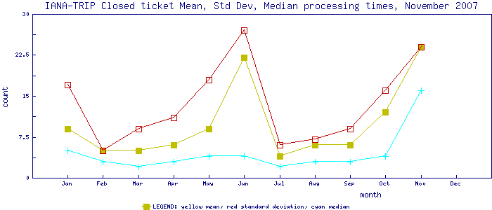 The statistics below are offered to measure IANA's fulfillment of the goals established in the ICANN / IANA - IETF MoU Supplemental Agreement. Further details on these goals and statistics can be found by reviewing the agreement.