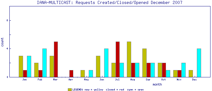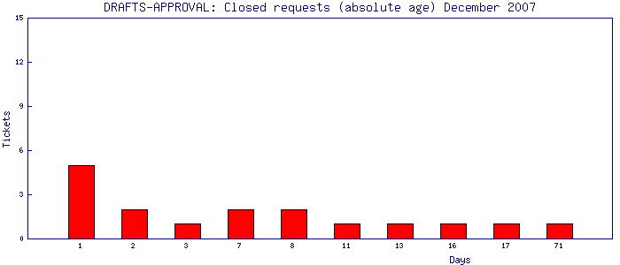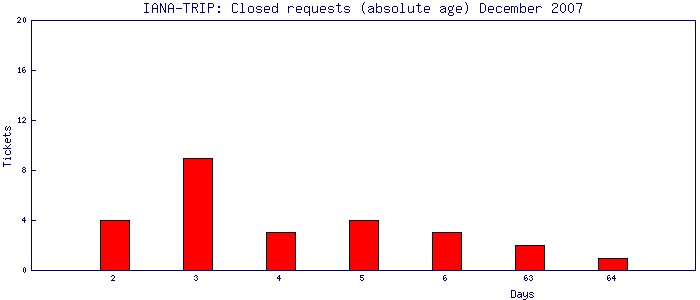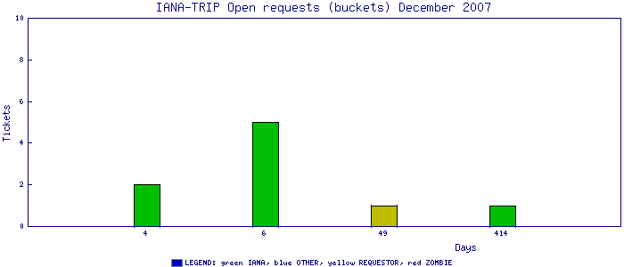 December 2007Due to the nature of resource request reviews, ICANN/IANA and the IETF community are jointly responsible for cooperatively managing the resource request process. ICANN/IANA has control over the functions it performs directly, e.g., receiving requests, making sure they are syntactically and semantically sensible, forwarding the requests to Designated Experts where appropriate, creating and modifying the registries, etc. The IETF community has direct or indirect control over functions performed by third parties, including IESG Designated Experts, the IESG, the IAB, the RFC Editor, and the requester. As such, the processing of requests has a “gross processing time” calendar days goal established for each function and a “net processing time” calendar days goal to reflect time expended directly by ICANN/IANA.
