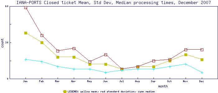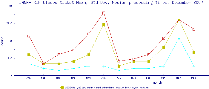 The statistics below are offered to measure IANA's fulfillment of the goals established in the ICANN / IANA - IETF MoU Supplemental Agreement. Further details on these goals and statistics can be found by reviewing the agreement.