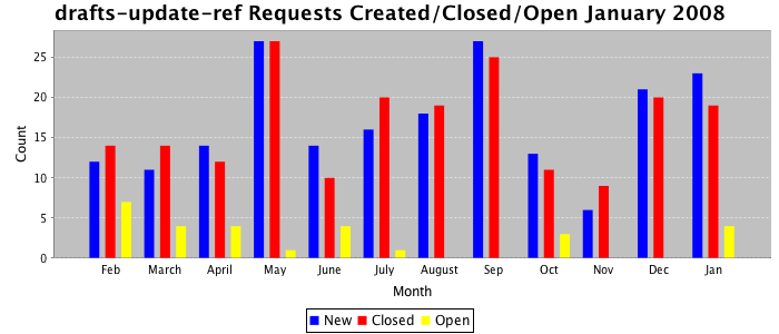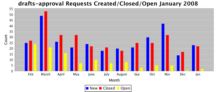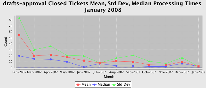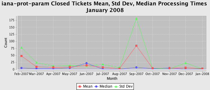 The statistics below are offered to measure IANA's fulfillment of the goals established in the ICANN / IANA - IETF MoU Supplemental Agreement. Further details on these goals and statistics can be found by reviewing the agreement.