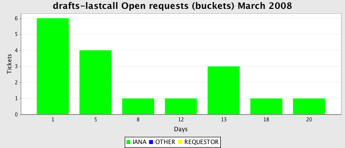 March 2008Due to the nature of resource request reviews, ICANN/IANA and the IETF community are jointly responsible for cooperatively managing the resource request process. ICANN/IANA has control over the functions it performs directly, e.g., receiving requests, making sure they are syntactically and semantically sensible, forwarding the requests to Designated Experts where appropriate, creating and modifying the registries, etc. The IETF community has direct or indirect control over functions performed by third parties, including IESG Designated Experts, the IESG, the IAB, the RFC Editor, and the requester. As such, the processing of requests has a “gross processing time” calendar days goal established for each function and a “net processing time” calendar days goal to reflect time expended directly by ICANN/IANA.