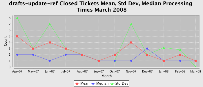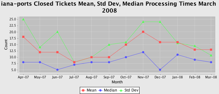 The statistics below are offered to measure IANA's fulfillment of the goals established in the ICANN / IANA - IETF MoU Supplemental Agreement. Further details on these goals and statistics can be found by reviewing the agreement.