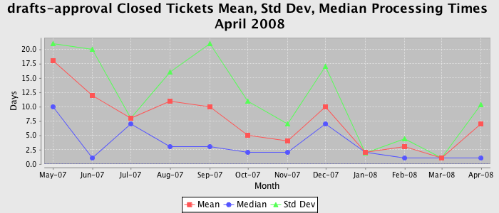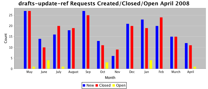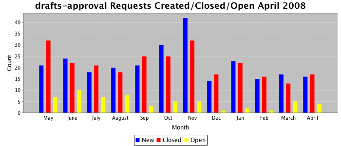 The statistics below are offered to measure IANA's fulfillment of the goals established in the ICANN / IANA - IETF MoU Supplemental Agreement. Further details on these goals and statistics can be found by reviewing the agreement.