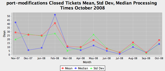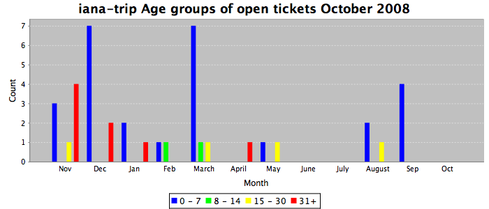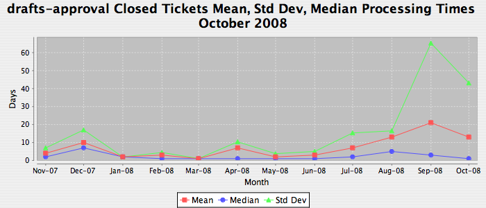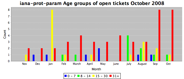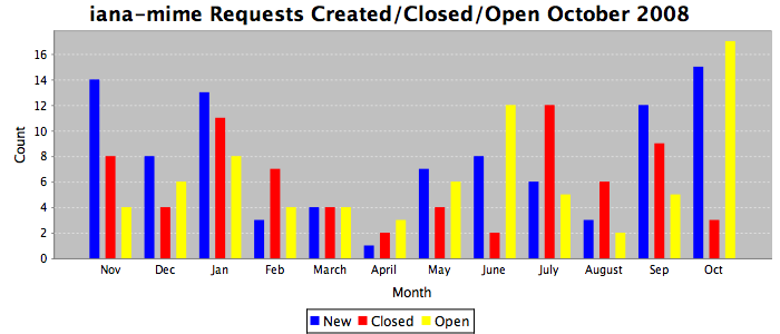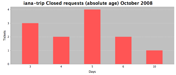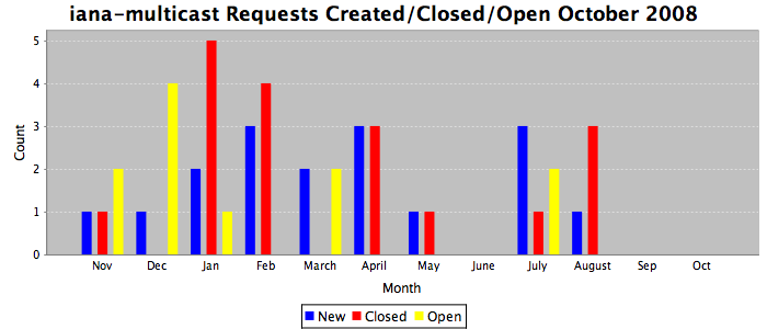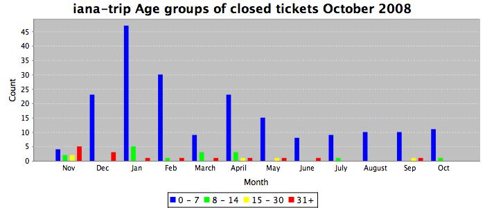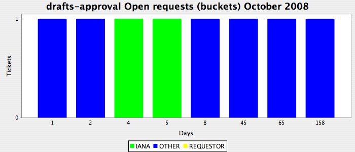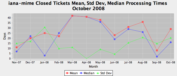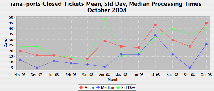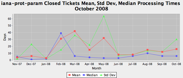 October 2008Due to the nature of resource request reviews, ICANN/IANA and the IETF community are jointly responsible for cooperatively managing the resource request process. ICANN/IANA has control over the functions it performs directly, e.g., receiving requests, making sure they are syntactically and semantically sensible, forwarding the requests to Designated Experts where appropriate, creating and modifying the registries, etc. The IETF community has direct or indirect control over functions performed by third parties, including IESG Designated Experts, the IESG, the IAB, the RFC Editor, and the requester. As such, the processing of requests has a “gross processing time” calendar days goal established for each function and a “net processing time” calendar days goal to reflect time expended directly by ICANN/IANA.