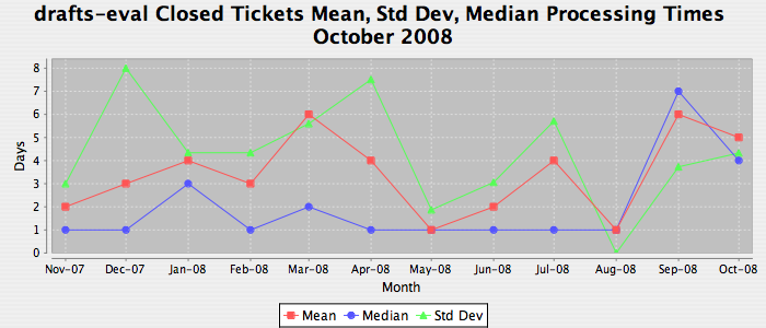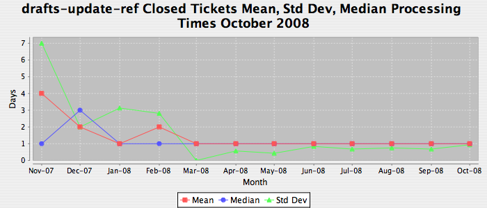 The statistics below are offered to measure IANA's fulfillment of the goals established in the ICANN / IANA - IETF MoU Supplemental Agreement. Further details on these goals and statistics can be found by reviewing the agreement.