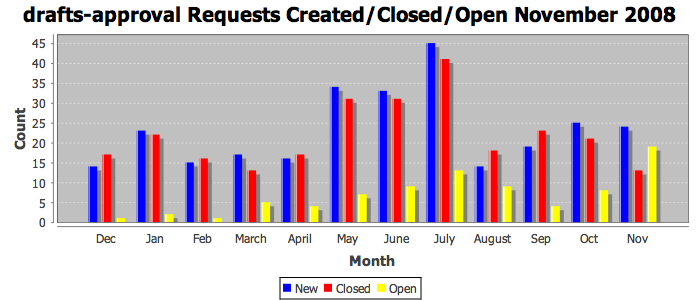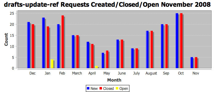The statistics below are offered to measure IANA's fulfillment of the goals established in the ICANN / IANA - IETF MoU Supplemental Agreement. Further details on these goals and statistics can be found by reviewing the agreement.