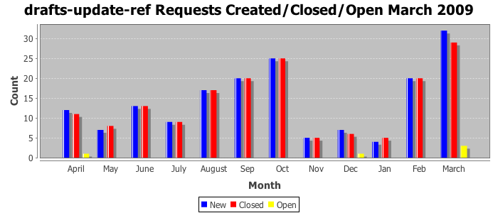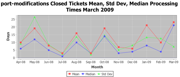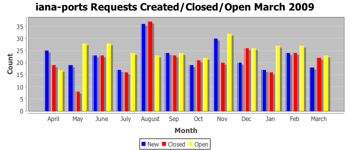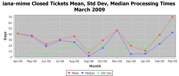 The statistics below are offered to measure IANA's fulfillment of the goals established in the ICANN / IANA - IETF MoU Supplemental Agreement. Further details on these goals and statistics can be found by reviewing the agreement.