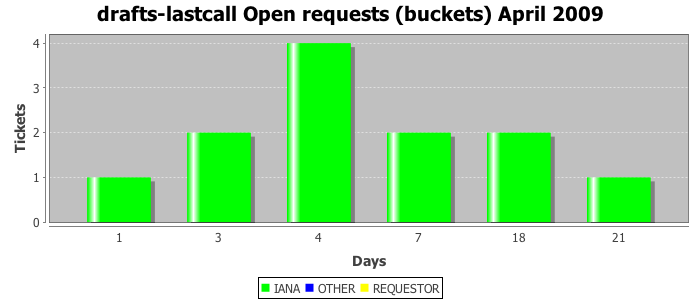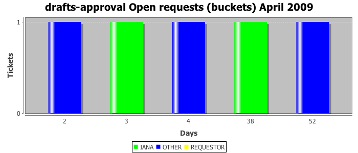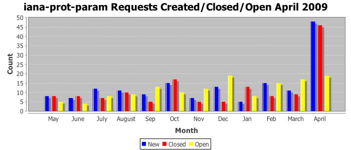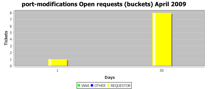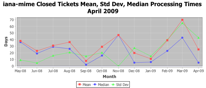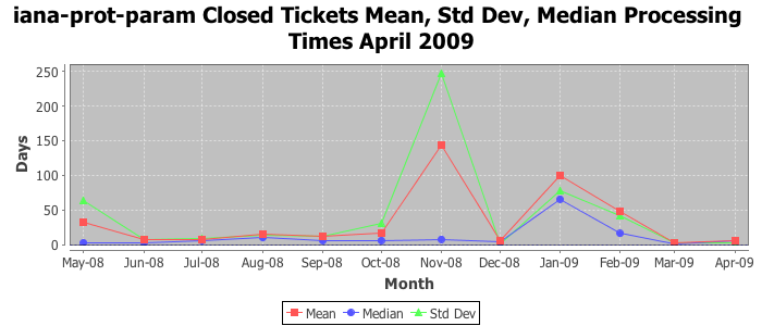 April 2009Due to the nature of resource request reviews, ICANN/IANA and the IETF community are jointly responsible for cooperatively managing the resource request process. ICANN/IANA has control over the functions it performs directly, e.g., receiving requests, making sure they are syntactically and semantically sensible, forwarding the requests to Designated Experts where appropriate, creating and modifying the registries, etc. The IETF community has direct or indirect control over functions performed by third parties, including IESG Designated Experts, the IESG, the IAB, the RFC Editor, and the requester. As such, the processing of requests has a “gross processing time” calendar days goal established for each function and a “net processing time” calendar days goal to reflect time expended directly by ICANN/IANA.