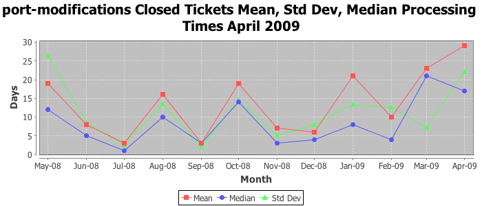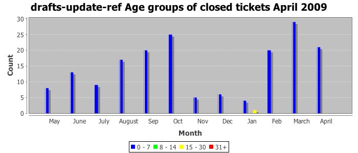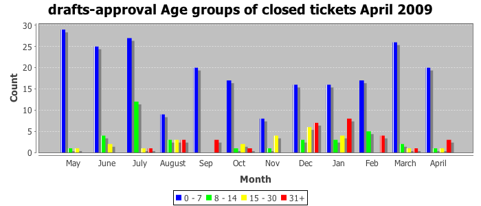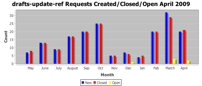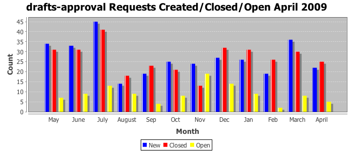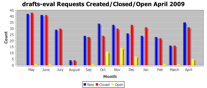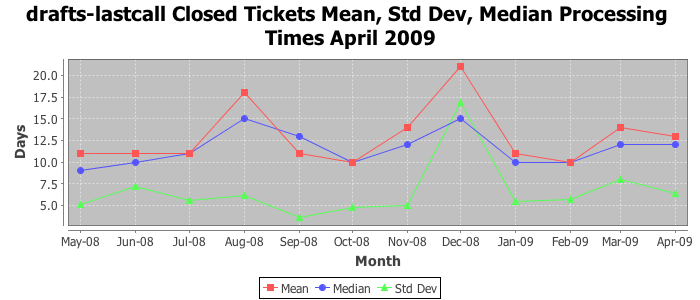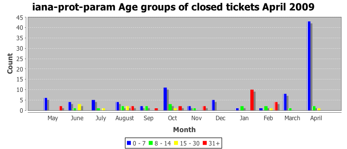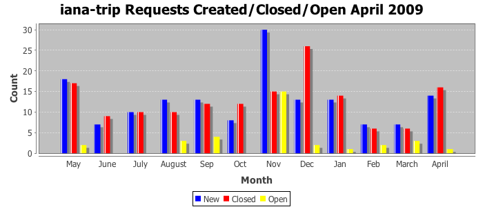 The statistics below are offered to measure IANA's fulfillment of the goals established in the ICANN / IANA - IETF MoU Supplemental Agreement. Further details on these goals and statistics can be found by reviewing the agreement.