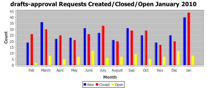 The statistics below are offered to measure IANA's fulfillment of the goals established in the ICANN / IANA - IETF MoU Supplemental Agreement. Further details on these goals and statistics can be found by reviewing the agreement.