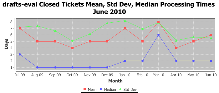 The statistics below are offered to measure IANA's fulfillment of the goals established in the ICANN / IANA - IETF MoU Supplemental Agreement. Further details on these goals and statistics can be found by reviewing the agreement.