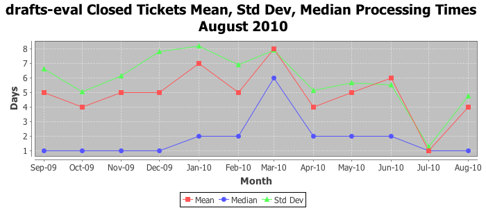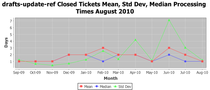 The statistics below are offered to measure IANA's fulfillment of the goals established in the ICANN / IANA - IETF MoU Supplemental Agreement. Further details on these goals and statistics can be found by reviewing the agreement.
