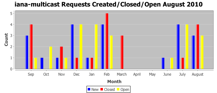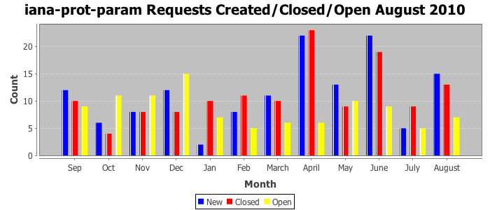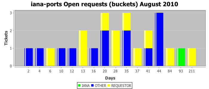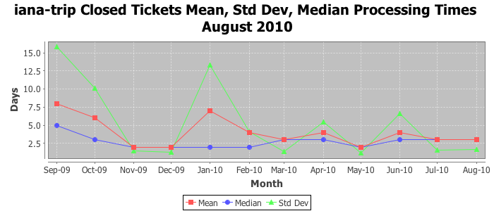 August 2010Due to the nature of resource request reviews, ICANN/IANA and the IETF community are jointly responsible for cooperatively managing the resource request process. ICANN/IANA has control over the functions it performs directly, e.g., receiving requests, making sure they are syntactically and semantically sensible, forwarding the requests to Designated Experts where appropriate, creating and modifying the registries, etc. The IETF community has direct or indirect control over functions performed by third parties, including IESG Designated Experts, the IESG, the IAB, the RFC Editor, and the requester. As such, the processing of requests has a “gross processing time” calendar days goal established for each function and a “net processing time” calendar days goal to reflect time expended directly by ICANN/IANA.