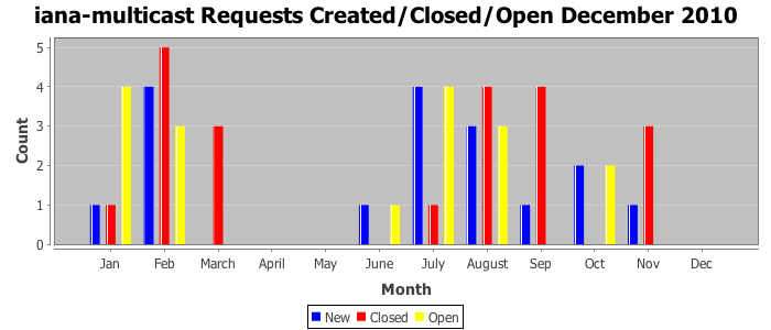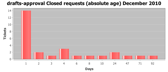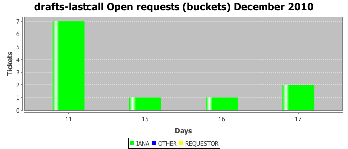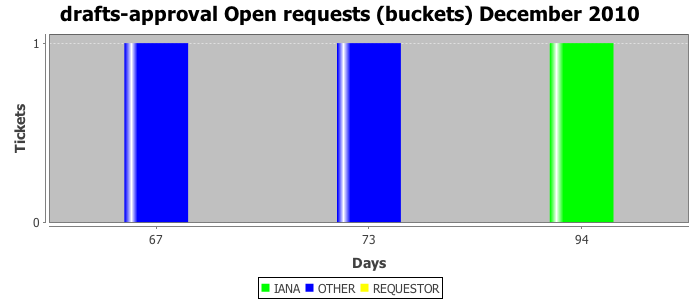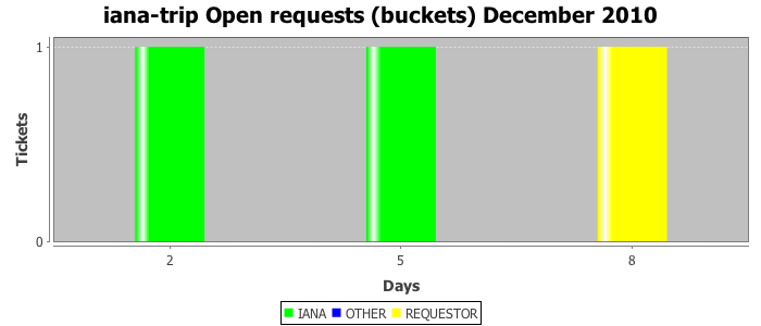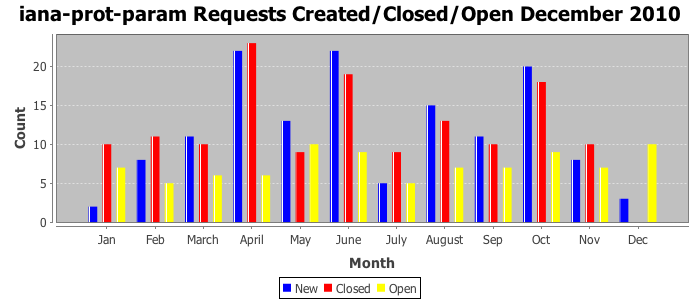 December 2010Due to the nature of resource request reviews, ICANN/IANA and the IETF community are jointly responsible for cooperatively managing the resource request process. ICANN/IANA has control over the functions it performs directly, e.g., receiving requests, making sure they are syntactically and semantically sensible, forwarding the requests to Designated Experts where appropriate, creating and modifying the registries, etc. The IETF community has direct or indirect control over functions performed by third parties, including IESG Designated Experts, the IESG, the IAB, the RFC Editor, and the requester. As such, the processing of requests has a “gross processing time” calendar days goal established for each function and a “net processing time” calendar days goal to reflect time expended directly by ICANN/IANA.