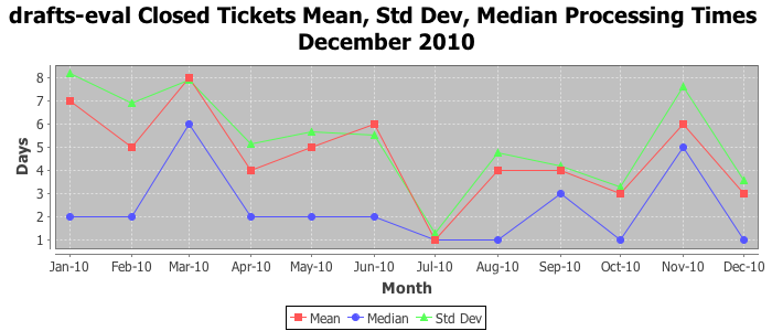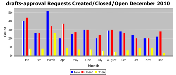 The statistics below are offered to measure IANA's fulfillment of the goals established in the ICANN / IANA - IETF MoU Supplemental Agreement. Further details on these goals and statistics can be found by reviewing the agreement.
