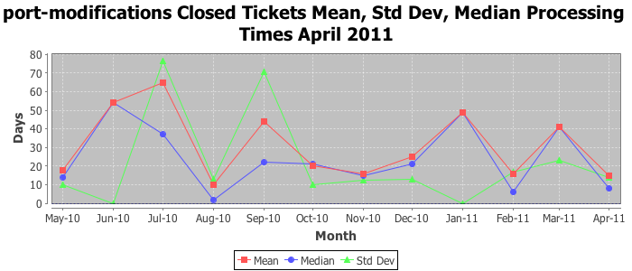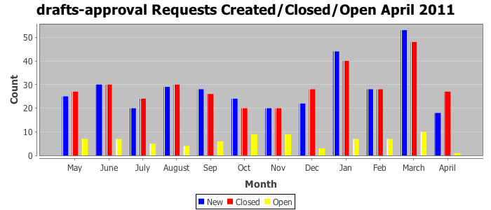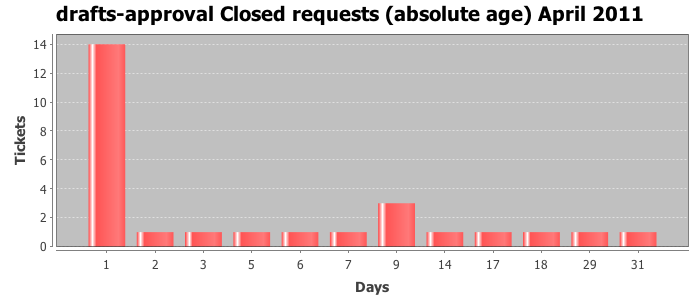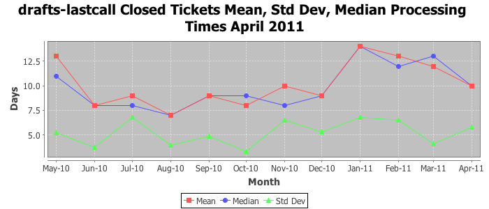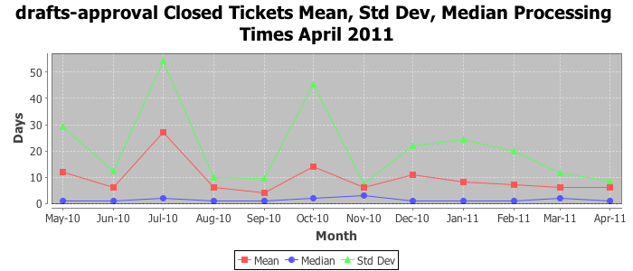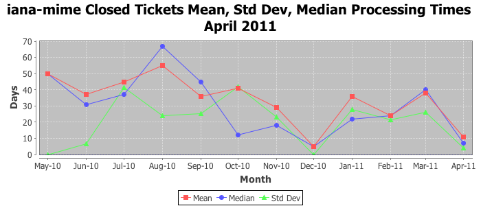The statistics below are offered to measure IANA's fulfillment of the goals established in the ICANN / IANA - IETF MoU Supplemental Agreement. Further details on these goals and statistics can be found by reviewing the agreement.