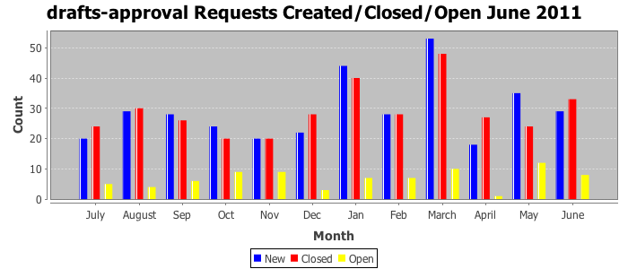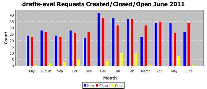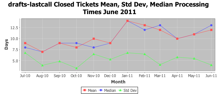 The statistics below are offered to measure IANA's fulfillment of the goals established in the ICANN / IANA - IETF MoU Supplemental Agreement. Further details on these goals and statistics can be found by reviewing the agreement.