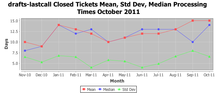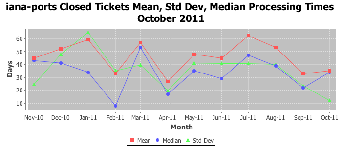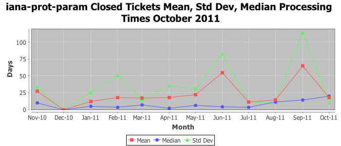 The statistics below are offered to measure IANA's fulfillment of the goals established in the ICANN / IANA - IETF MoU Supplemental Agreement. Further details on these goals and statistics can be found by reviewing the agreement.