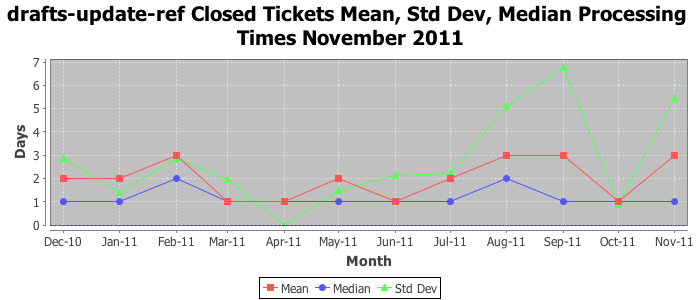 The statistics below are offered to measure IANA's fulfillment of the goals established in the ICANN / IANA - IETF MoU Supplemental Agreement. Further details on these goals and statistics can be found by reviewing the agreement.