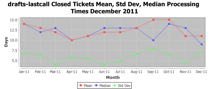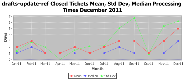 The statistics below are offered to measure IANA's fulfillment of the goals established in the ICANN / IANA - IETF MoU Supplemental Agreement. Further details on these goals and statistics can be found by reviewing the agreement.
