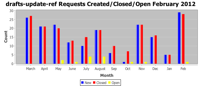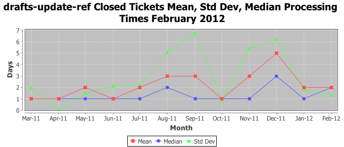 The statistics below are offered to measure IANA's fulfillment of the goals established in the ICANN / IANA - IETF MoU Supplemental Agreement. Further details on these goals and statistics can be found by reviewing the agreement.