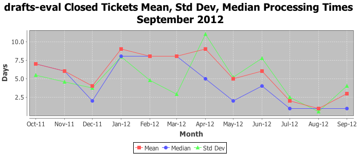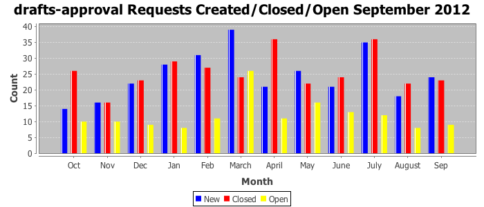 The statistics below are offered to measure IANA's fulfillment of the goals established in the ICANN / IANA - IETF MoU Supplemental Agreement. Further details on these goals and statistics can be found by reviewing the agreement.