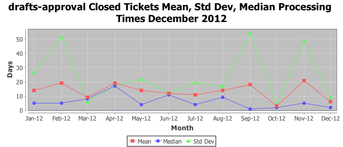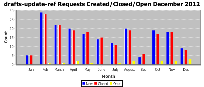 The statistics below are offered to measure IANA's fulfillment of the goals established in the ICANN / IANA - IETF MoU Supplemental Agreement. Further details on these goals and statistics can be found by reviewing the agreement.