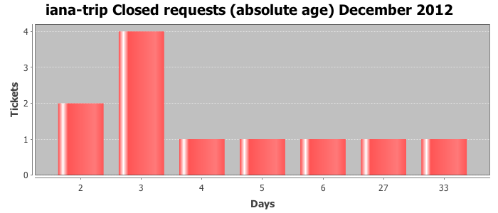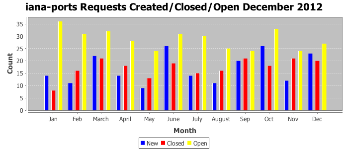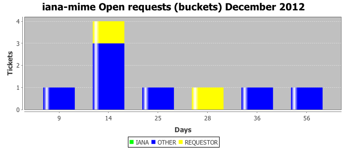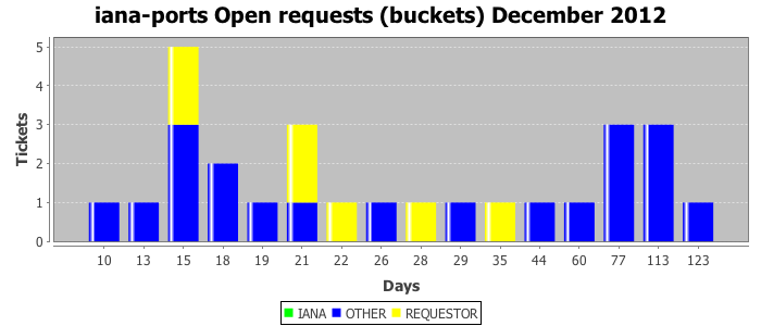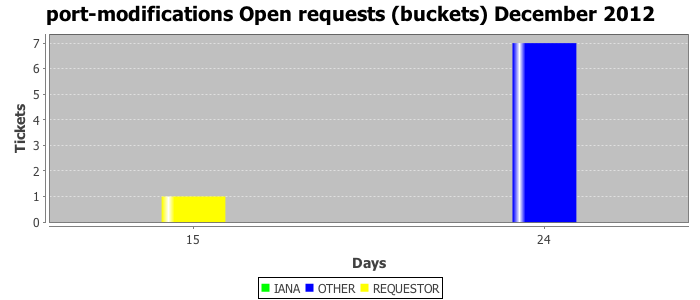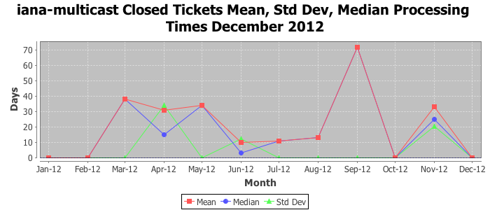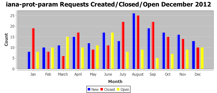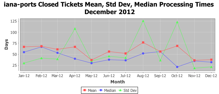 December 2012Due to the nature of resource request reviews, ICANN/IANA and the IETF community are jointly responsible for cooperatively managing the resource request process. ICANN/IANA has control over the functions it performs directly, e.g., receiving requests, making sure they are syntactically and semantically sensible, forwarding the requests to Designated Experts where appropriate, creating and modifying the registries, etc. The IETF community has direct or indirect control over functions performed by third parties, including IESG Designated Experts, the IESG, the IAB, the RFC Editor, and the requester. As such, the processing of requests has a “gross processing time” calendar days goal established for each function and a “net processing time” calendar days goal to reflect time expended directly by ICANN/IANA.