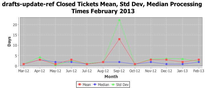 The statistics below are offered to measure IANA's fulfillment of the goals established in the ICANN / IANA - IETF MoU Supplemental Agreement. Further details on these goals and statistics can be found by reviewing the agreement.