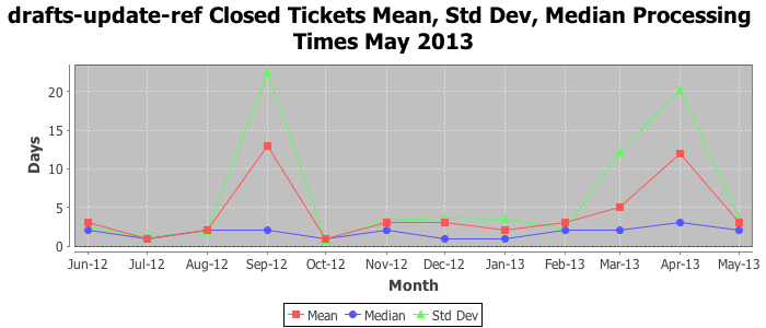 The statistics below are offered to measure IANA's fulfillment of the goals established in the ICANN / IANA - IETF MoU Supplemental Agreement. Further details on these goals and statistics can be found by reviewing the agreement.