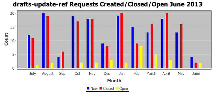 The statistics below are offered to measure IANA's fulfillment of the goals established in the ICANN / IANA - IETF MoU Supplemental Agreement. Further details on these goals and statistics can be found by reviewing the agreement.
