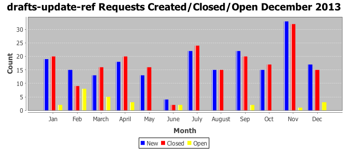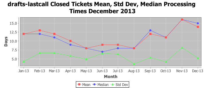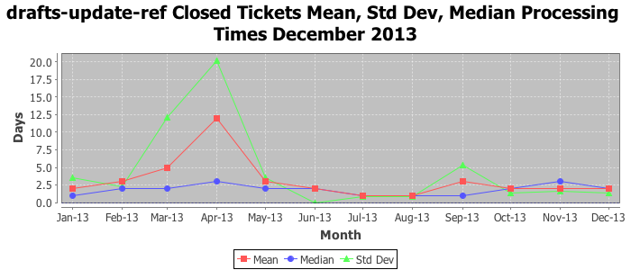 The statistics below are offered to measure IANA's fulfillment of the goals established in the ICANN / IANA - IETF MoU Supplemental Agreement. Further details on these goals and statistics can be found by reviewing the agreement.