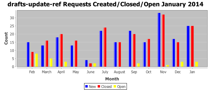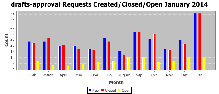 The statistics below are offered to measure IANA's fulfillment of the goals established in the ICANN / IANA - IETF MoU Supplemental Agreement. Further details on these goals and statistics can be found by reviewing the agreement.