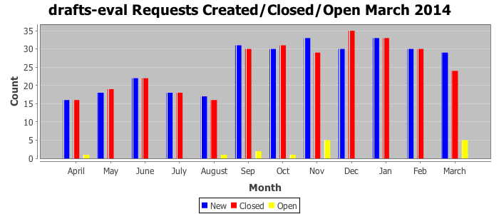 The statistics below are offered to measure IANA's fulfillment of the goals established in the ICANN / IANA - IETF MoU Supplemental Agreement. Further details on these goals and statistics can be found by reviewing the agreement.