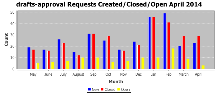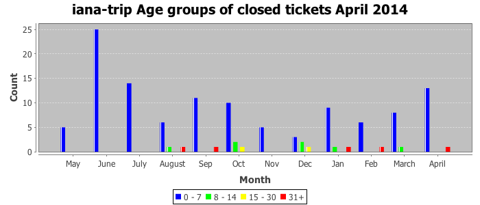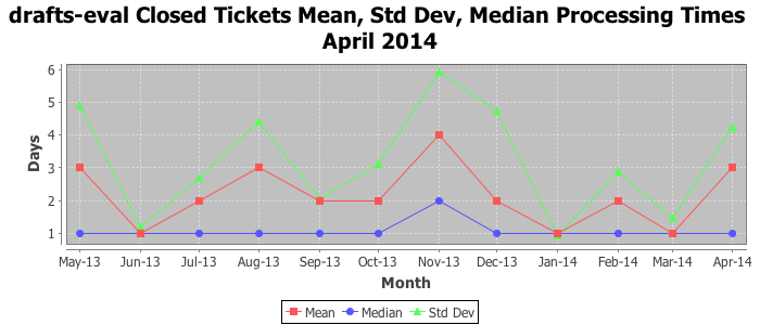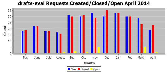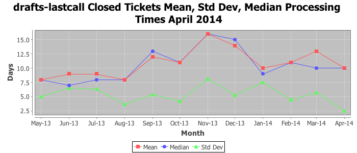 The statistics below are offered to measure IANA's fulfillment of the goals established in the ICANN / IANA - IETF MoU Supplemental Agreement. Further details on these goals and statistics can be found by reviewing the agreement.