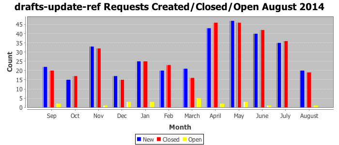 The statistics below are offered to measure IANA's fulfillment of the goals established in the ICANN / IANA - IETF MoU Supplemental Agreement. Further details on these goals and statistics can be found by reviewing the agreement.