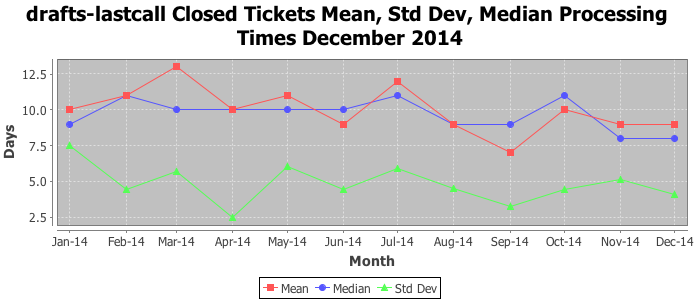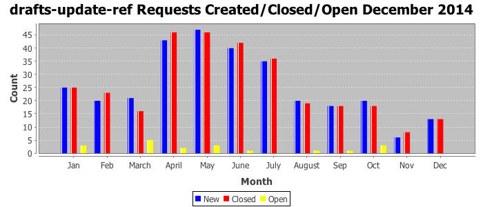The statistics below are offered to measure IANA's fulfillment of the goals established in the ICANN / IANA - IETF MoU Supplemental Agreement. Further details on these goals and statistics can be found by reviewing the agreement.