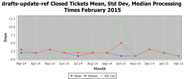 The statistics below are offered to measure IANA's fulfillment of the goals established in the ICANN / IANA - IETF MoU Supplemental Agreement. Further details on these goals and statistics can be found by reviewing the agreement.