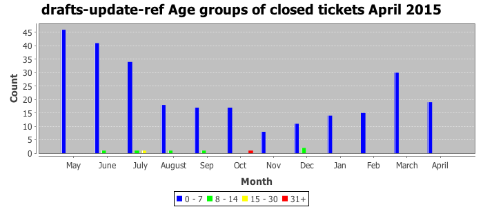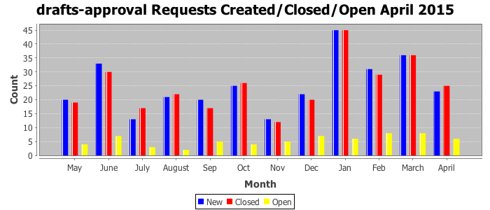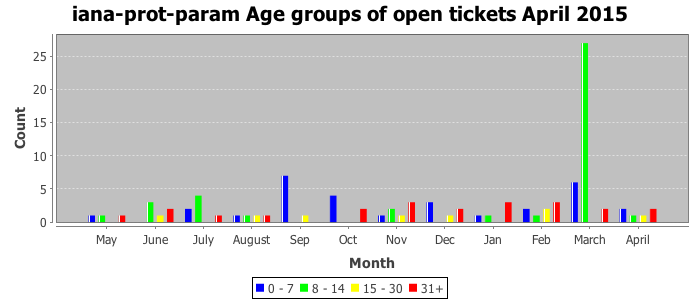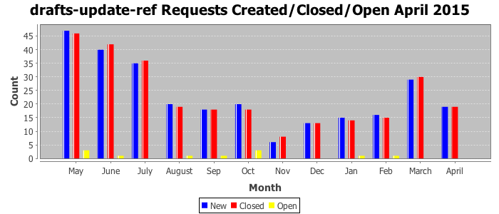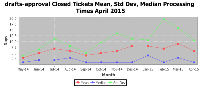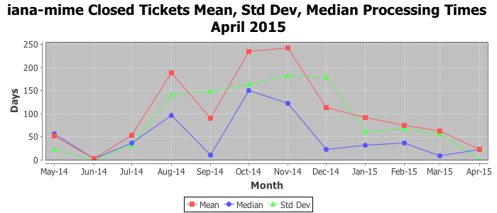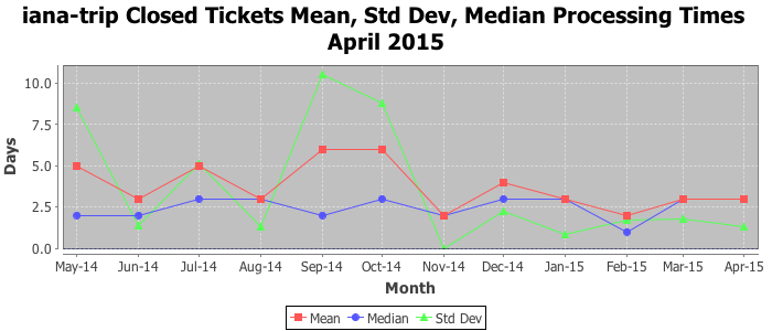 The statistics below are offered to measure IANA's fulfillment of the goals established in the ICANN / IANA - IETF MoU Supplemental Agreement. Further details on these goals and statistics can be found by reviewing the agreement.