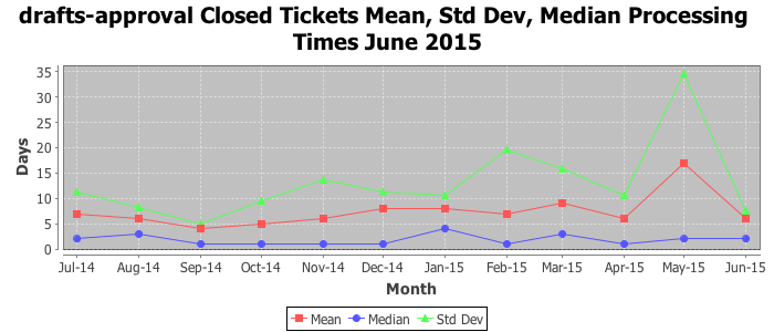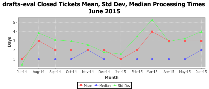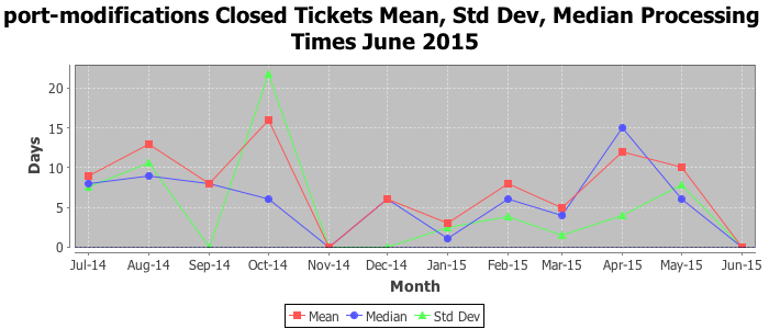 The statistics below are offered to measure IANA's fulfillment of the goals established in the ICANN / IANA - IETF MoU Supplemental Agreement. Further details on these goals and statistics can be found by reviewing the agreement.