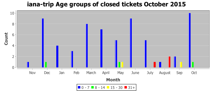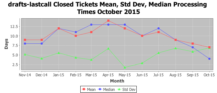 The statistics below are offered to measure IANA's fulfillment of the goals established in the ICANN / IANA - IETF MoU Supplemental Agreement. Further details on these goals and statistics can be found by reviewing the agreement.