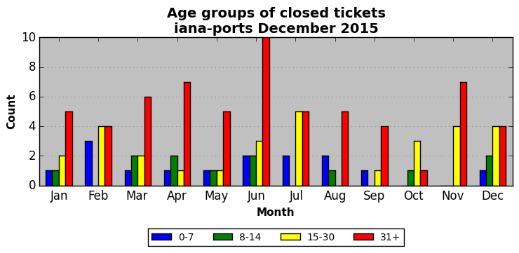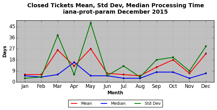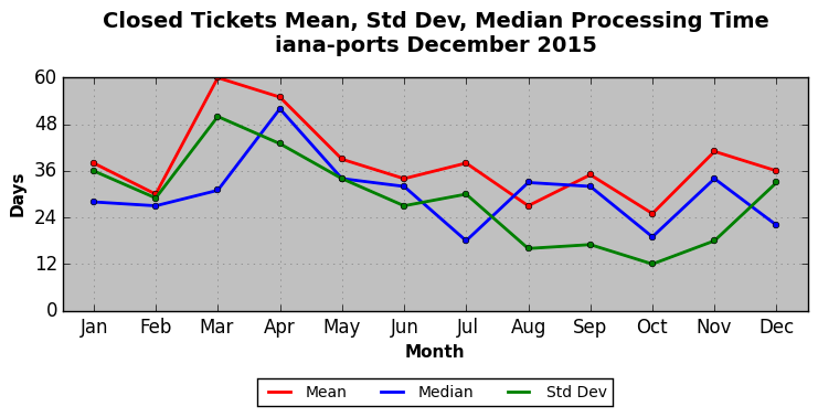 The statistics below are offered to measure IANA's fulfillment of the goals established in the ICANN / IANA - IETF MoU Supplemental Agreement. Further details on these goals and statistics can be found by reviewing the agreement.