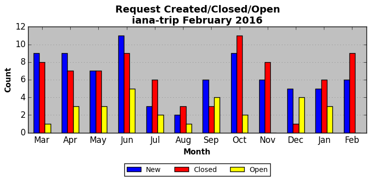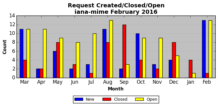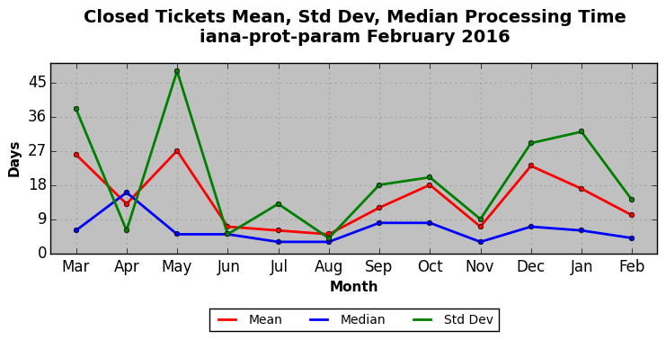 The statistics below are offered to measure IANA's fulfillment of the goals established in the ICANN / IANA - IETF MoU Supplemental Agreement. Further details on these goals and statistics can be found by reviewing the agreement.