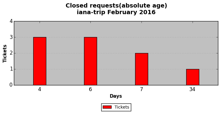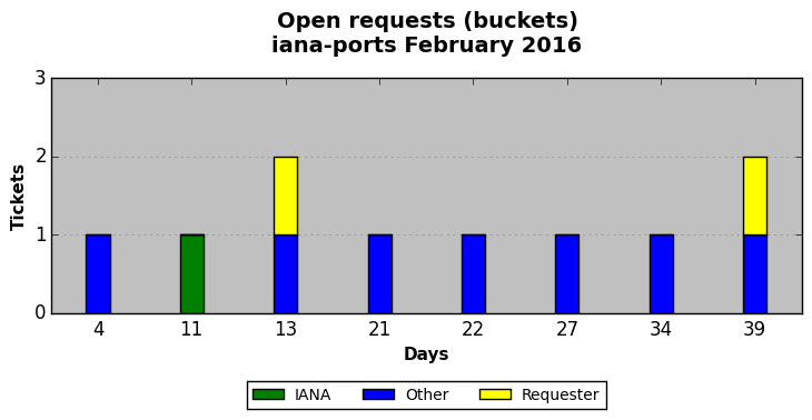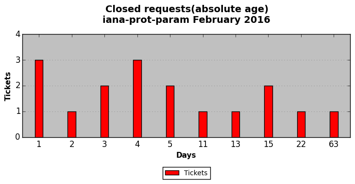 February 2016Due to the nature of resource request reviews, ICANN/IANA and the IETF community are jointly responsible for cooperatively managing the resource request process. ICANN/IANA has control over the functions it performs directly, e.g., receiving requests, making sure they are syntactically and semantically sensible, forwarding the requests to Designated Experts where appropriate, creating and modifying the registries, etc. The IETF community has direct or indirect control over functions performed by third parties, including IESG Designated Experts, the IESG, the IAB, the RFC Editor, and the requester. As such, the processing of requests has a “gross processing time” calendar days goal established for each function and a “net processing time” calendar days goal to reflect time expended directly by ICANN/IANA.