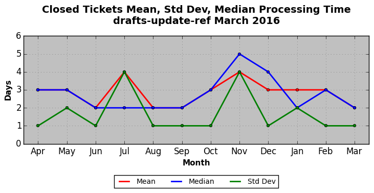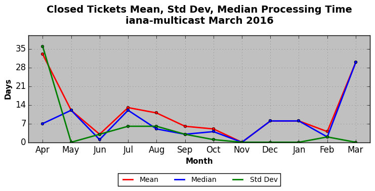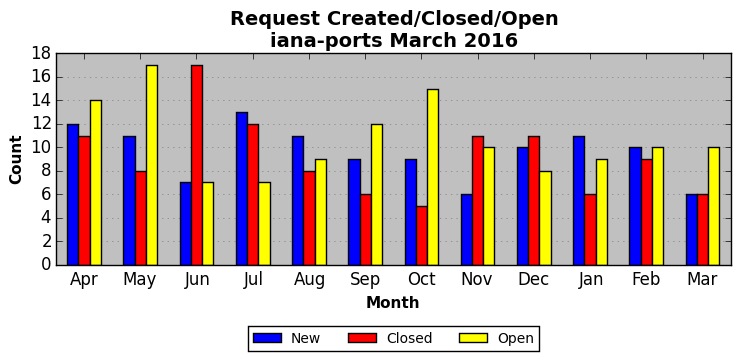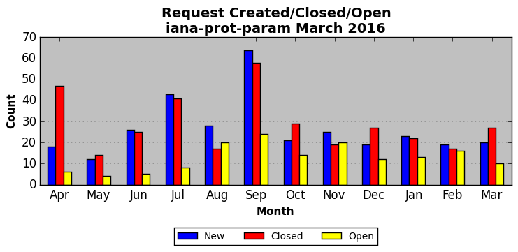 The statistics below are offered to measure IANA's fulfillment of the goals established in the ICANN / IANA - IETF MoU Supplemental Agreement. Further details on these goals and statistics can be found by reviewing the agreement.