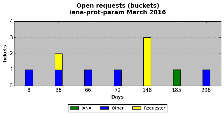 March 2016Due to the nature of resource request reviews, ICANN/IANA and the IETF community are jointly responsible for cooperatively managing the resource request process. ICANN/IANA has control over the functions it performs directly, e.g., receiving requests, making sure they are syntactically and semantically sensible, forwarding the requests to Designated Experts where appropriate, creating and modifying the registries, etc. The IETF community has direct or indirect control over functions performed by third parties, including IESG Designated Experts, the IESG, the IAB, the RFC Editor, and the requester. As such, the processing of requests has a “gross processing time” calendar days goal established for each function and a “net processing time” calendar days goal to reflect time expended directly by ICANN/IANA.