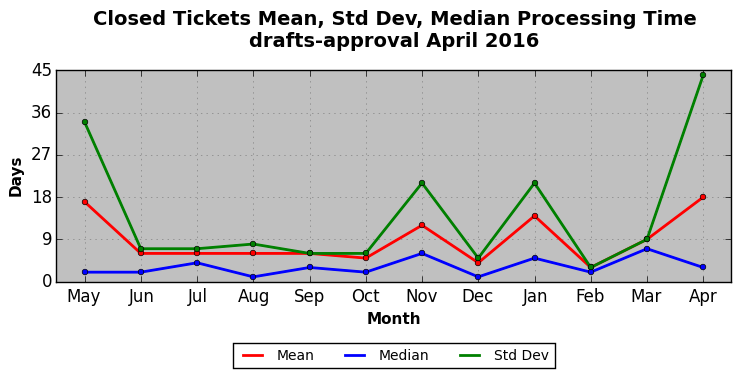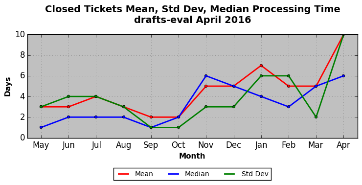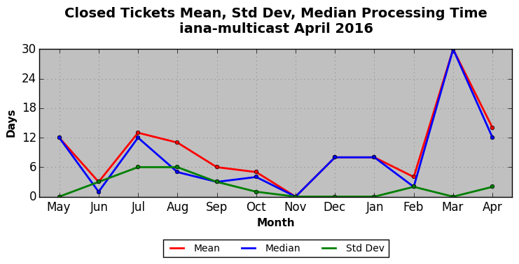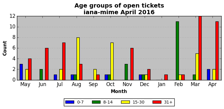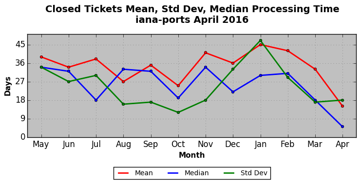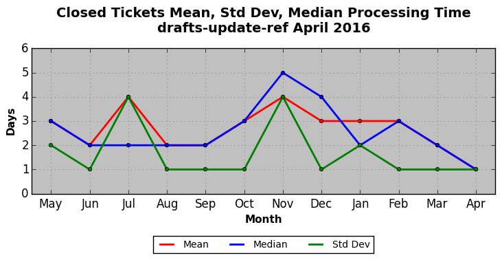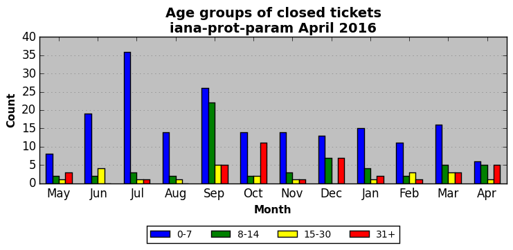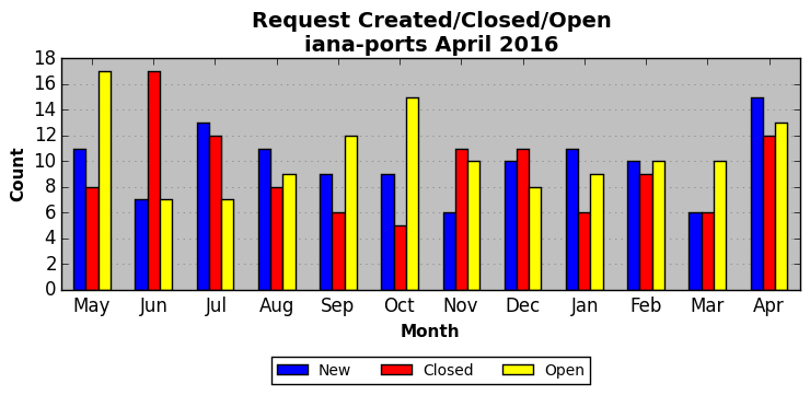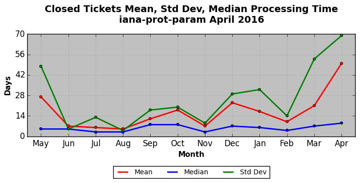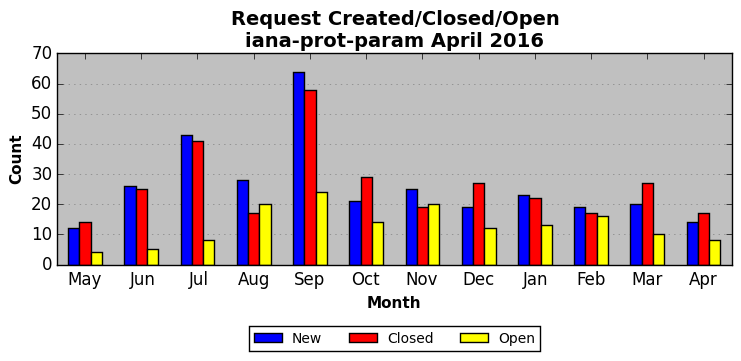 The statistics below are offered to measure IANA's fulfillment of the goals established in the ICANN / IANA - IETF MoU Supplemental Agreement. Further details on these goals and statistics can be found by reviewing the agreement.