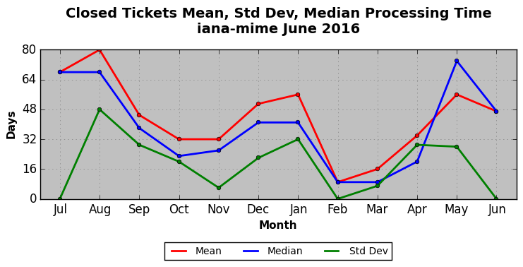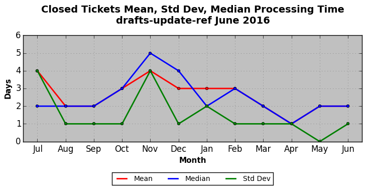 The statistics below are offered to measure IANA's fulfillment of the goals established in the ICANN / IANA - IETF MoU Supplemental Agreement. Further details on these goals and statistics can be found by reviewing the agreement.