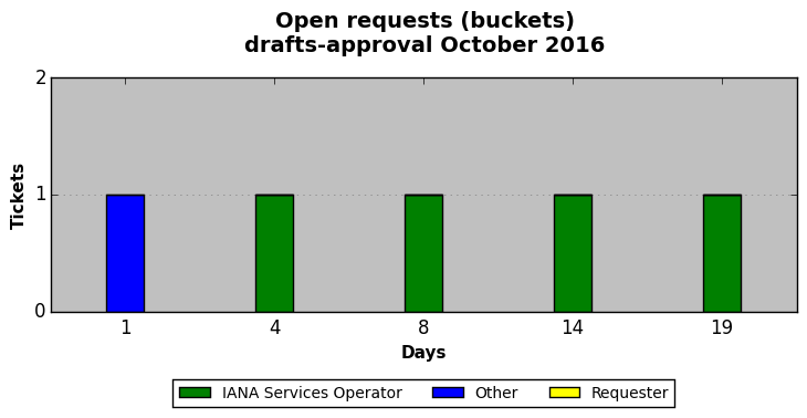 October 2016Due to the nature of resource request reviews, ICANN/IANA and the IETF community are jointly responsible for cooperatively managing the resource request process. ICANN/IANA has control over the functions it performs directly, e.g., receiving requests, making sure they are syntactically and semantically sensible, forwarding the requests to Designated Experts where appropriate, creating and modifying the registries, etc. The IETF community has direct or indirect control over functions performed by third parties, including IESG Designated Experts, the IESG, the IAB, the RFC Editor, and the requester. As such, the processing of requests has a “gross processing time” calendar days goal established for each function and a “net processing time” calendar days goal to reflect time expended directly by ICANN/IANA.